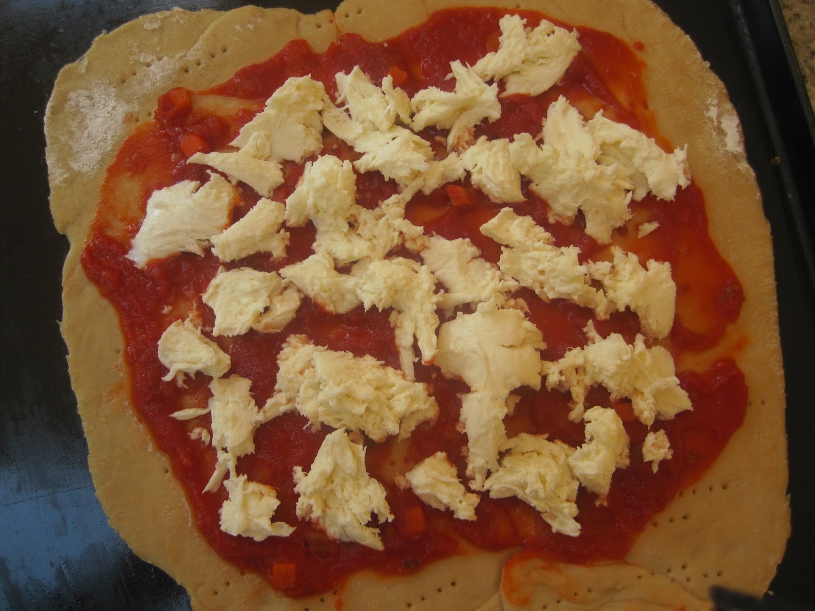- anything you want to put on your pizza! (I put one ball of mozzarella, 8 pieces of parma ham and a handful of fresh basil)